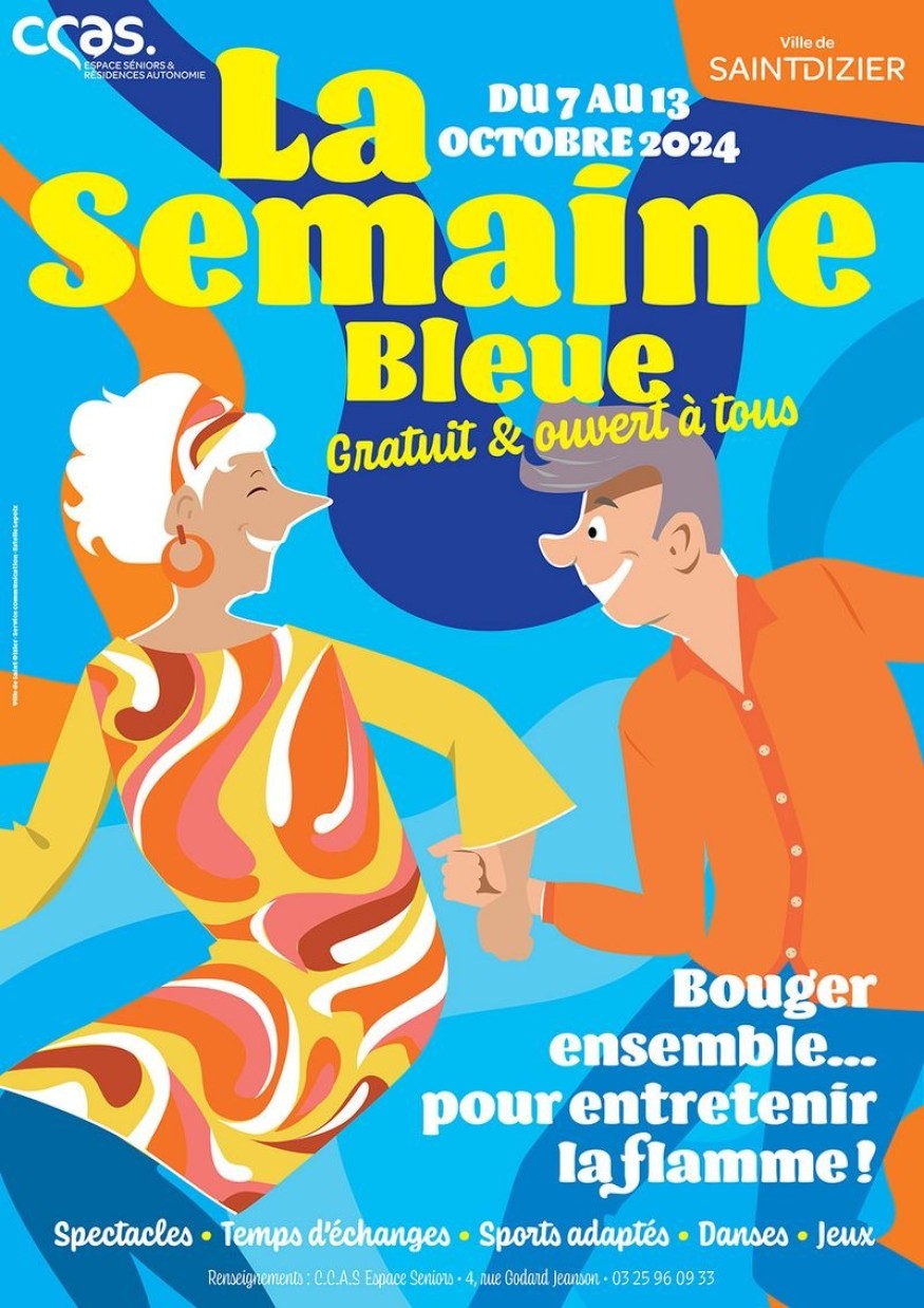 La Ville de Saint-Dizier proposera du 07 au 13 octobre plusieurs actions et manifestations dans le cadre de la semaine bleue. Rendez vous sur www.saintdizier.fr pour découvrir le programme.